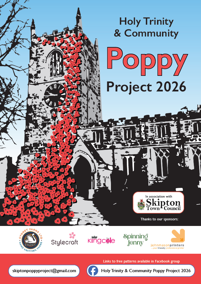 We’re excited to share an inspiring community project blooming in the heart of Skipton! The Holy Trinity Church Poppy Project 2026 is now underway – and we need you to help us create a stunning cascade of 10,000 handmade poppies to flow from the church steeple in time for Remembrance Sunday 2026.