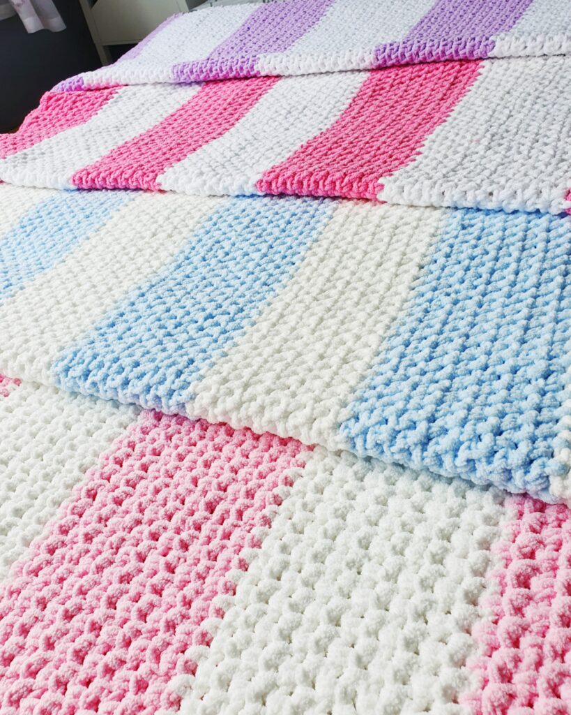 Made using Aldi chunky yarn, this blanket creates a wonderfully soft and squishy texture that’s perfect for snuggling. The chunky yarn helps it work up quickly, making it a satisfying project that results in a warm and comforting handmade blanket. Ideal for relaxing crochet evenings or gifting to someone special.