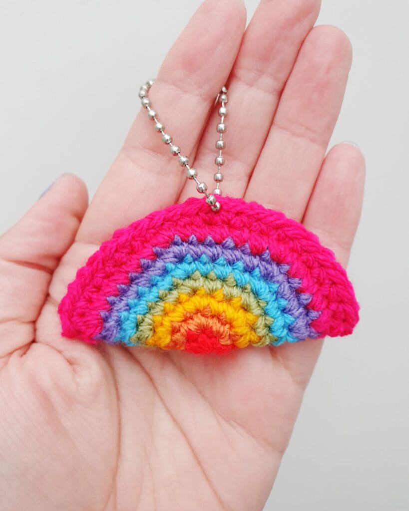 This tiny rainbow is bright, cheerful and stitches up in minutes, perfect for using leftover yarn. Make it into a keyring, bag charm, nursery mobile piece, or a cute little gift to brighten someone’s day. A fun, beginner-friendly scrap-buster that adds a pop of colour wherever it goes!