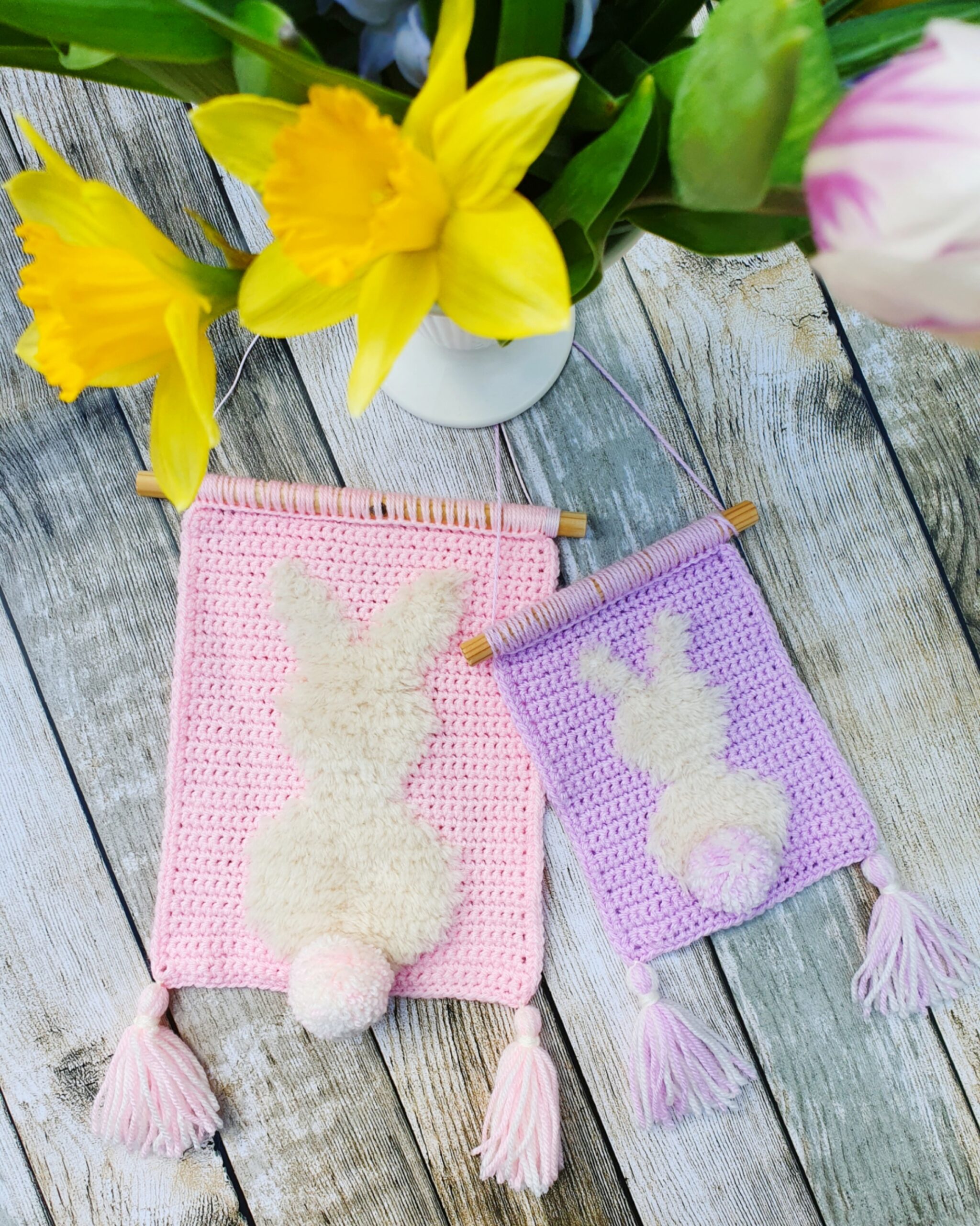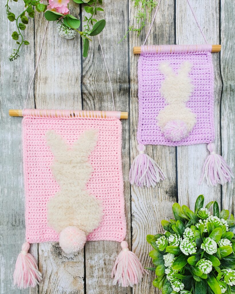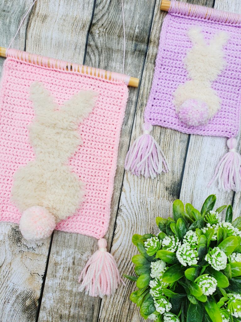 Crochet the adorable Fluffy Bunny Wall Hanging with this FREE pattern 🐰